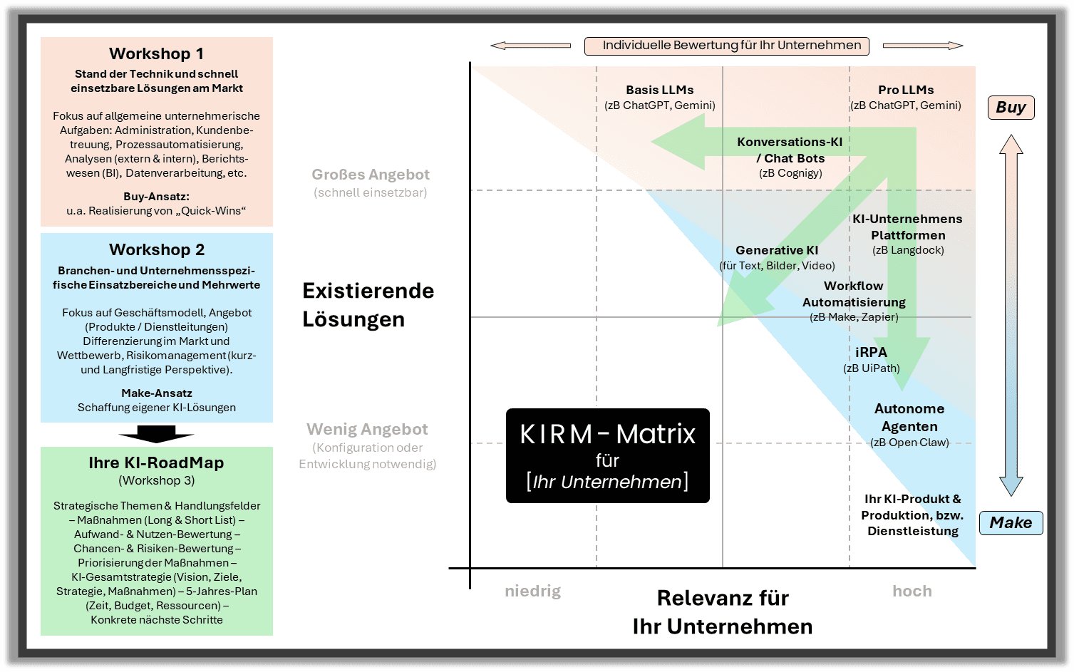 Ihre individuelle KIRM-Matrix - Einen Überblick aller Potenziale und Einsatzbereiche von KI für Ihr Unternehmen - für heute und im Ausblick auf die nächsten Jahre